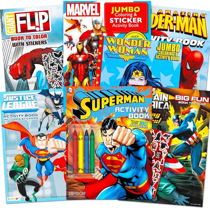 Amazon Com Superhero Giant Coloring Book Assortment 7 Books Featuring Avengers Justice League Batman Spiderman And More Includes Stickers Toys Games