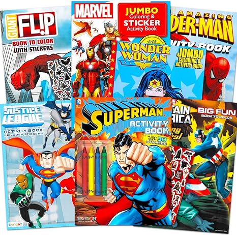 Amazon Com Superhero Giant Coloring Book Assortment 7 Books Featuring Avengers Justice League Batman Spiderman And More Includes Stickers Toys Games