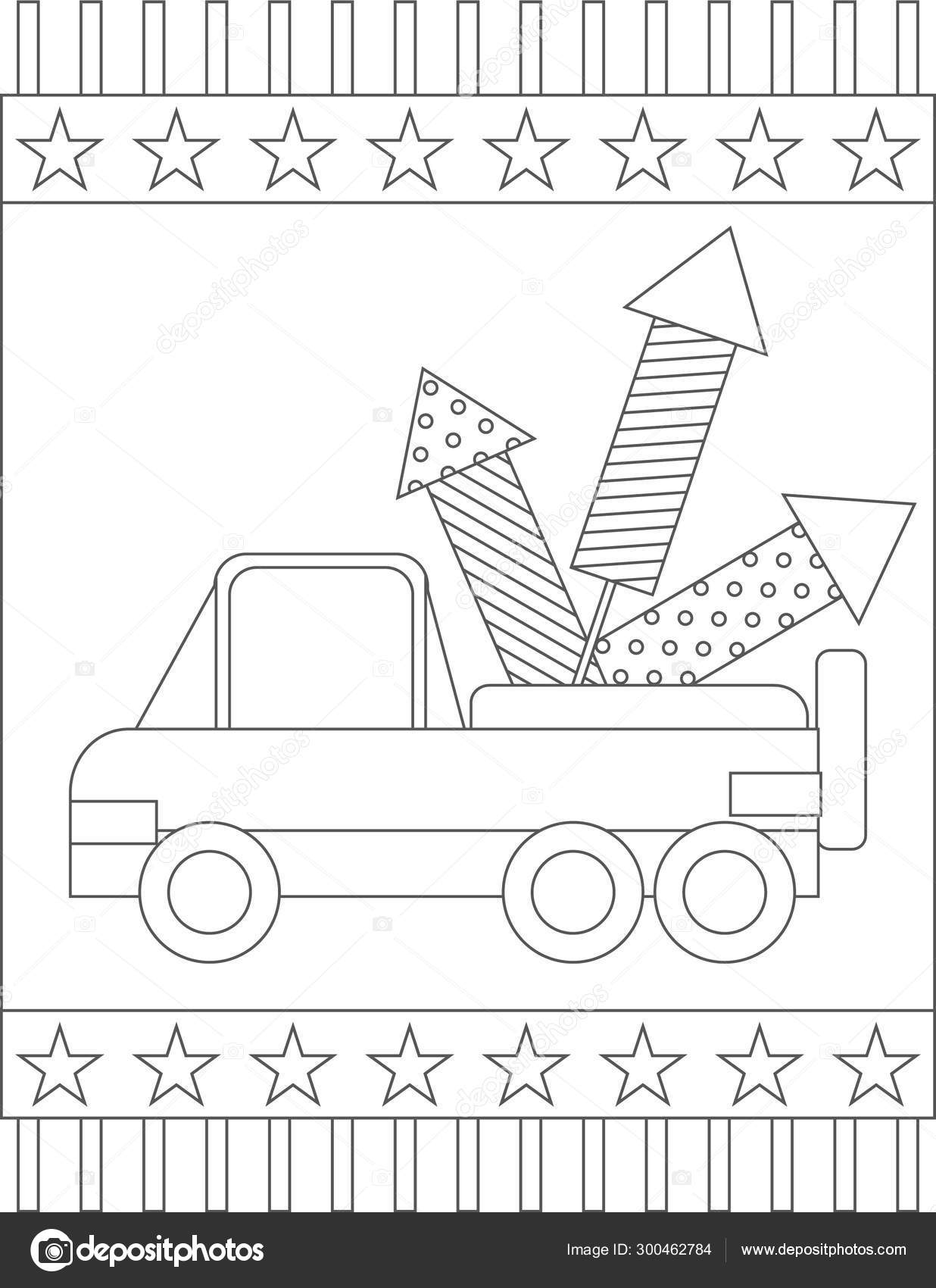 Livre Coloriage Patriotique Americain Page Camion Portant Des Feux Artifice Image Vectorielle Lenakrivosheeva C 300462784