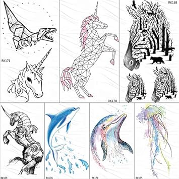 Lihaohao Papier De Dauphin De Dinosaure Temporaire De Tatouage Geometrique De Licorne Pour Les Enfants Impermeable Flash Zebre Autocollant De Tatouage 10x6cm 7pc Amazon Fr Jeux Et Jouets