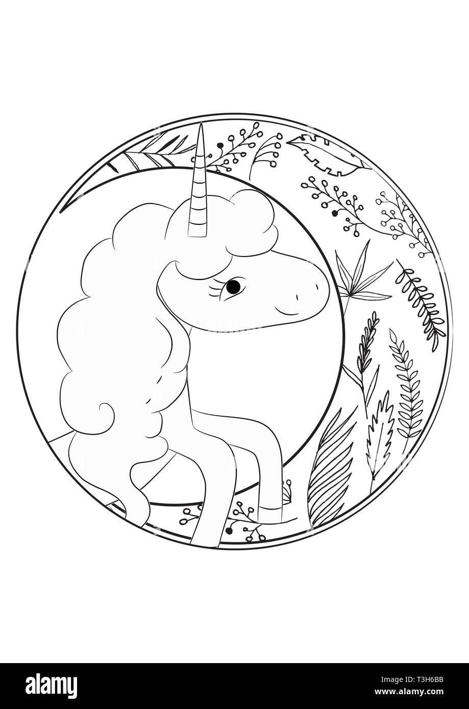 Illustration Avec Mignon Animal Licorne Mystique Le Noir Et Blanc Sur L Icone De La Ligne Simple Coloriages Magie Fantasy Party Aire De Jeu L Etude De Theme Photo Stock Alamy