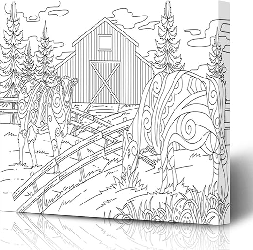 Ahawoso Impression Sur Toile 30 5 X 30 5 Cm Livre De Coloriage Pour Adulte Motif Vache De Ferme Amazon Fr Cuisine Maison