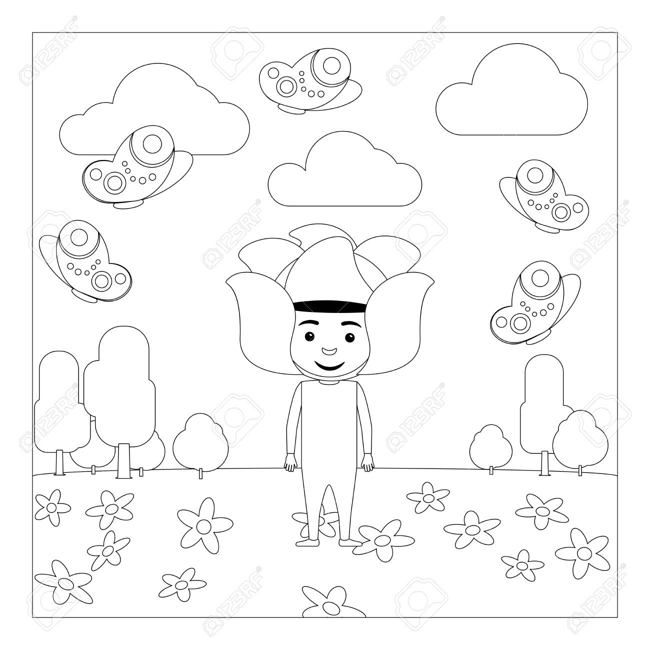 Enfant En Robe A Fleurs Fantaisie A La Maternelle Coloriage Pour Les Enfants Illustration Vectorielle Clip Art Libres De Droits Vecteurs Et Illustration Image 64416526