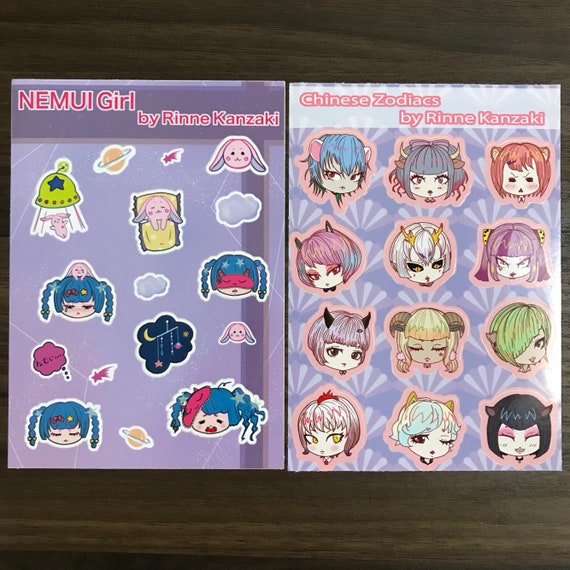 Original Sticker Sheets Nemui Girl And Chinese Zodiacs Etsy