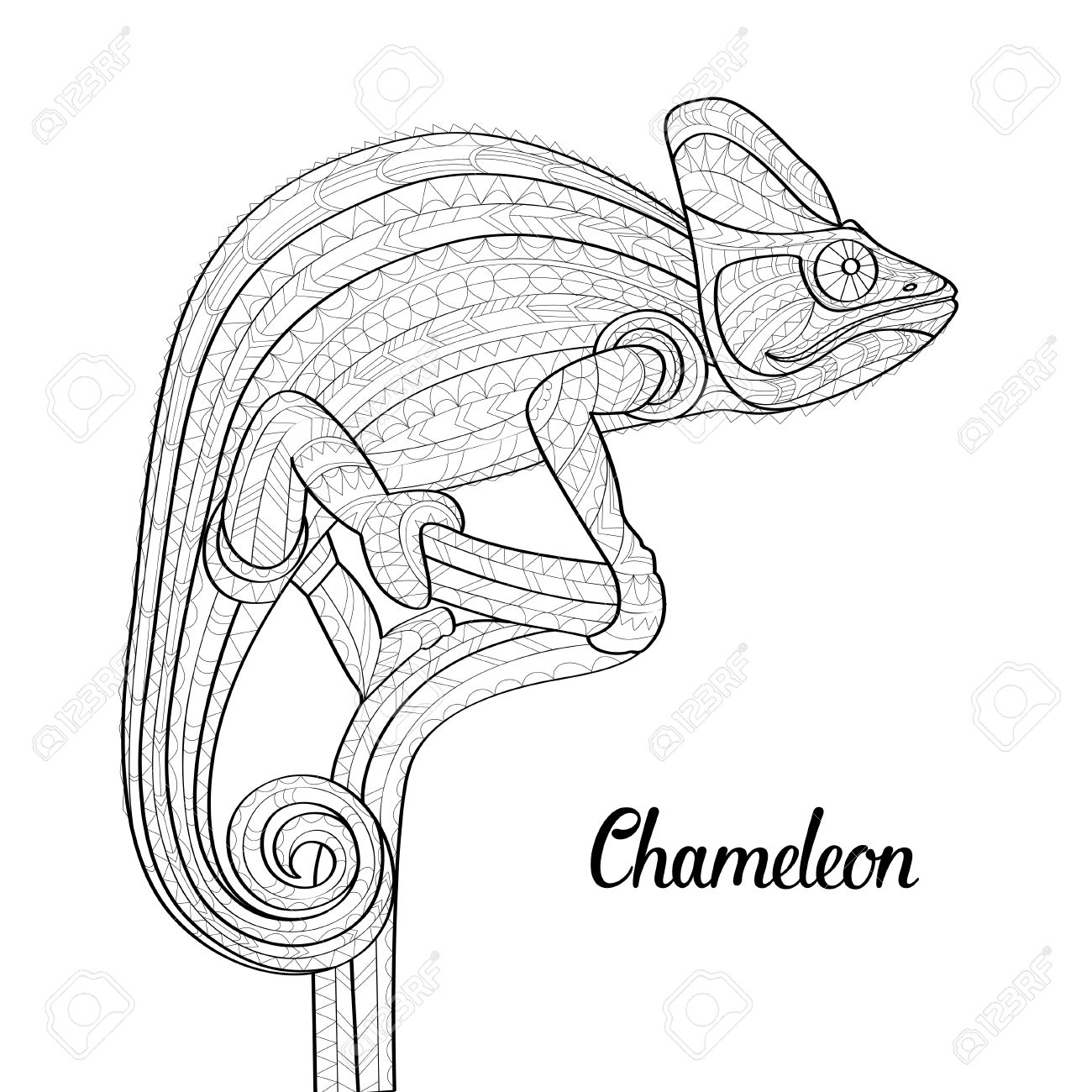 Main Doodle Dessine Contour Cameleon Illustration Decoratif En Totem Indien Ethnique Conception Azteque Tribal Africain Feu Modelee Sur Le Fond Grunge Esquisse Pour Antistress Adulte Coloriage Clip Art Libres De Droits