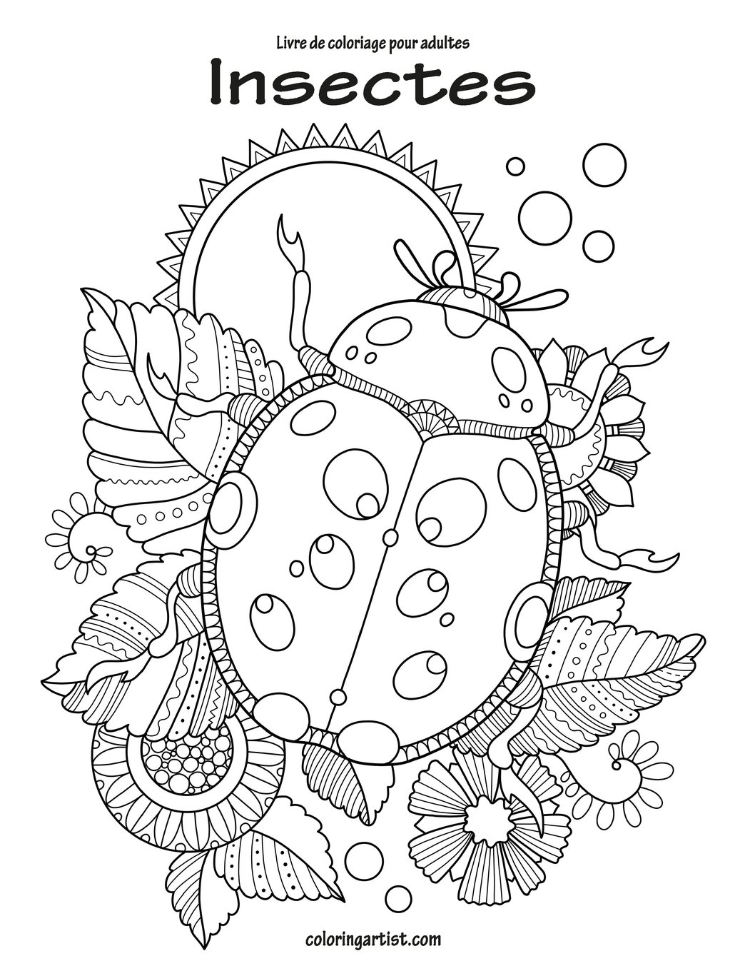 Coloriage Avec Des Feuilles Et Des Insectes Coloriages Difficiles Pour Adultes
