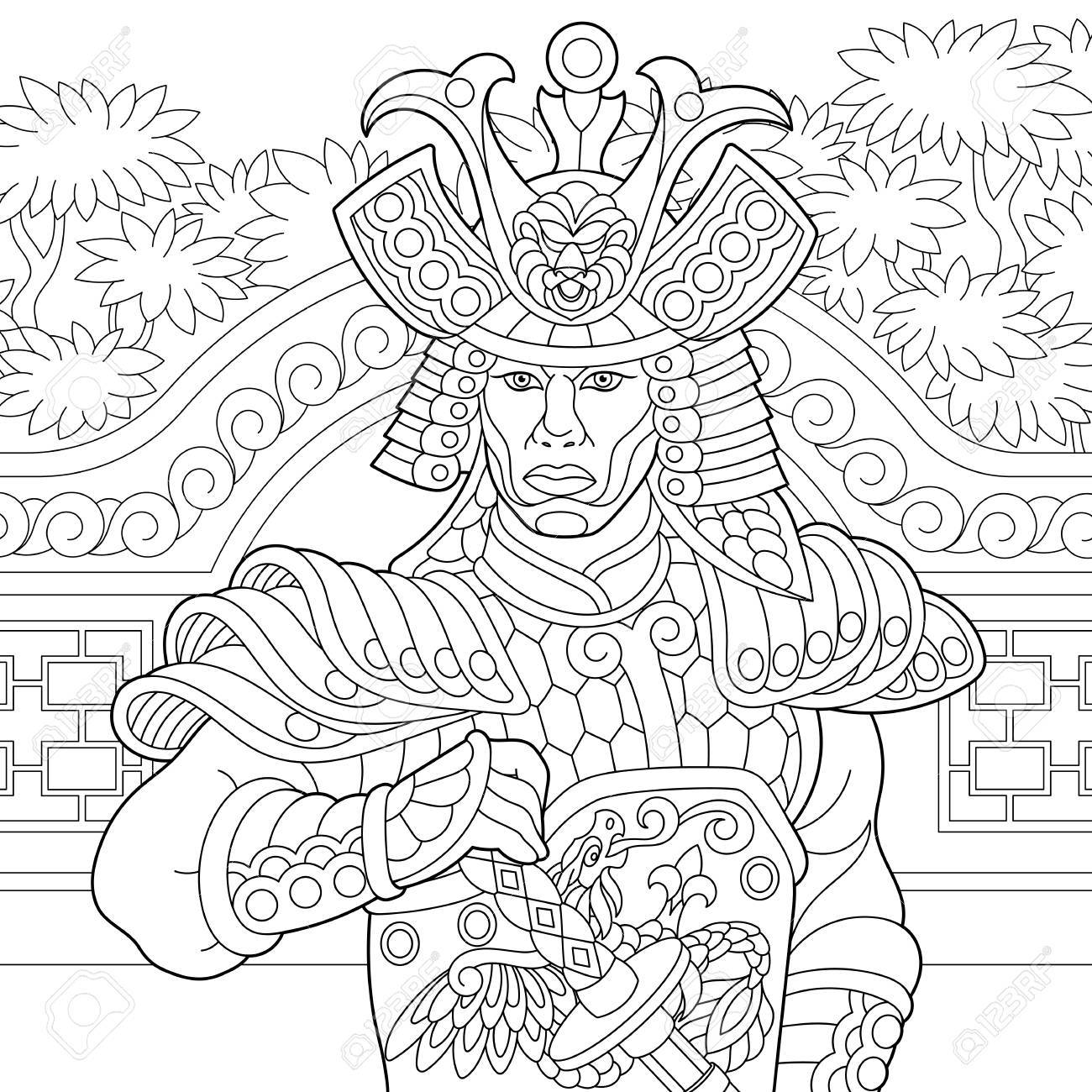 Coloriage De Samourai Japonais Avec Epee Katana Dessin De Croquis A Main Levee Pour Livre De Coloriage Antistress Adulte Clip Art Libres De Droits Vecteurs Et Illustration Image 87766448