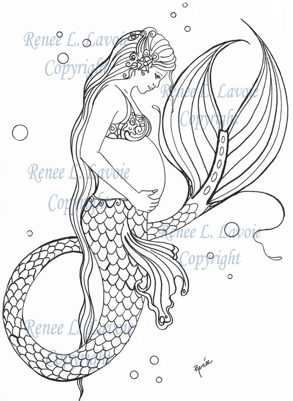 Digi Stamp Baby Blue Mermaid Pregancy Art Fantasy Art By Etsy