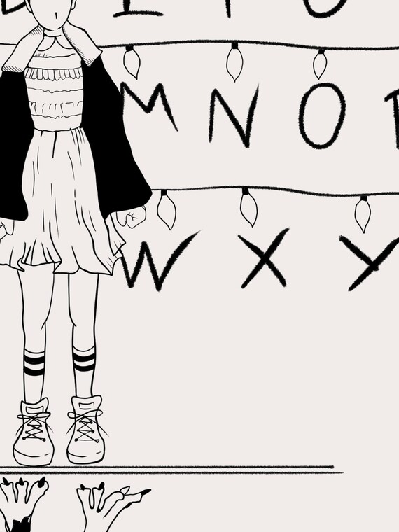 Prints Eleven Stranger Things Drawing Of Eleven With Lights Etsy