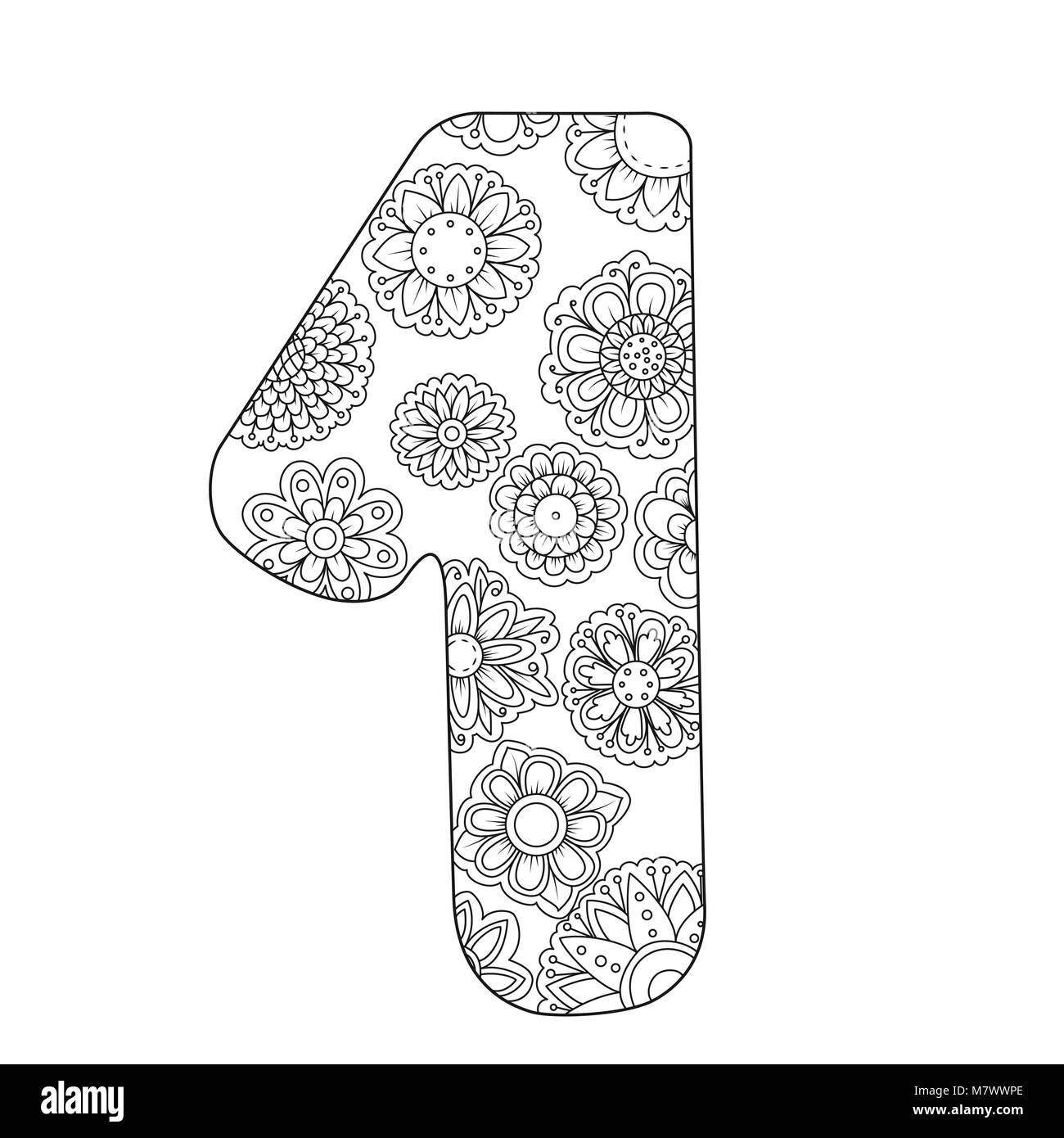 Livre De Coloriage Zen Pour Les Adultes Numero Un Figure 1 Modele De Tangle Ornement Floral Vector Illustration Anniversaire Image Vectorielle Stock Alamy